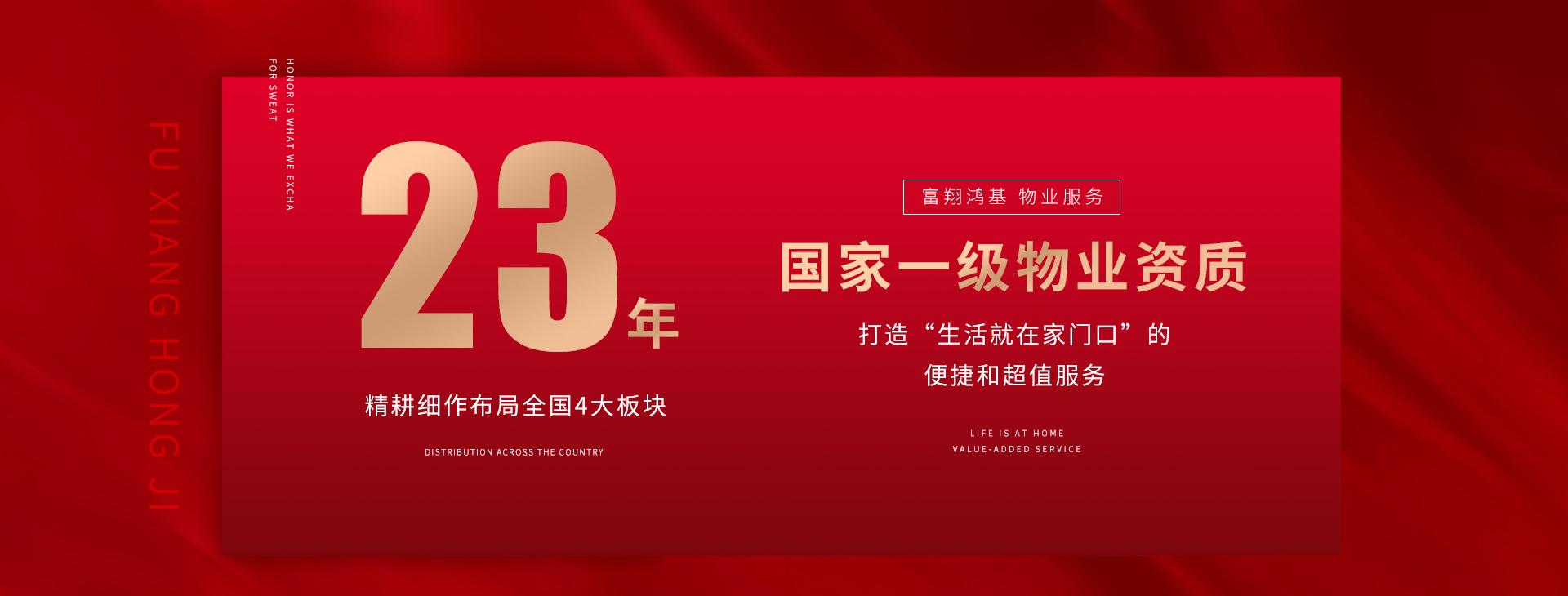 廣西富翔鴻基物業服務有限責任公司成立于2001年5月,注冊資金為人民幣1000萬元,為中國物業協會理事單位,廣西物業管理專業委員會副主任單位,桂林市物業服務行業協會副會長單位。自成立以來,嚴格遵循“業主至上”的工作宗旨,大力倡導“嚴格苛求、自覺奉獻”的工作精神。